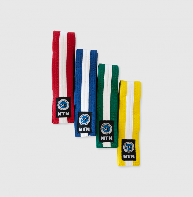 Belter til junior gult, grønt og blått belte. Beltet er av god kvalitet, med NTN-emblem.